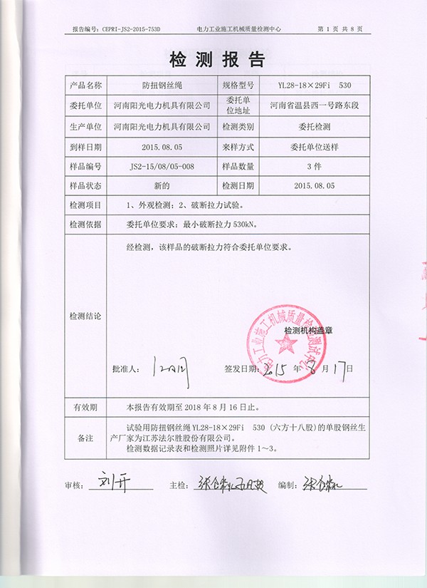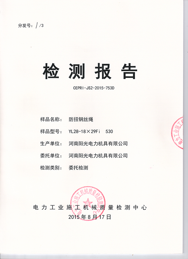 恭祝我公司YL28-18×29Fi 530通過電力工業(yè)施工機械質(zhì)量檢測中心認證